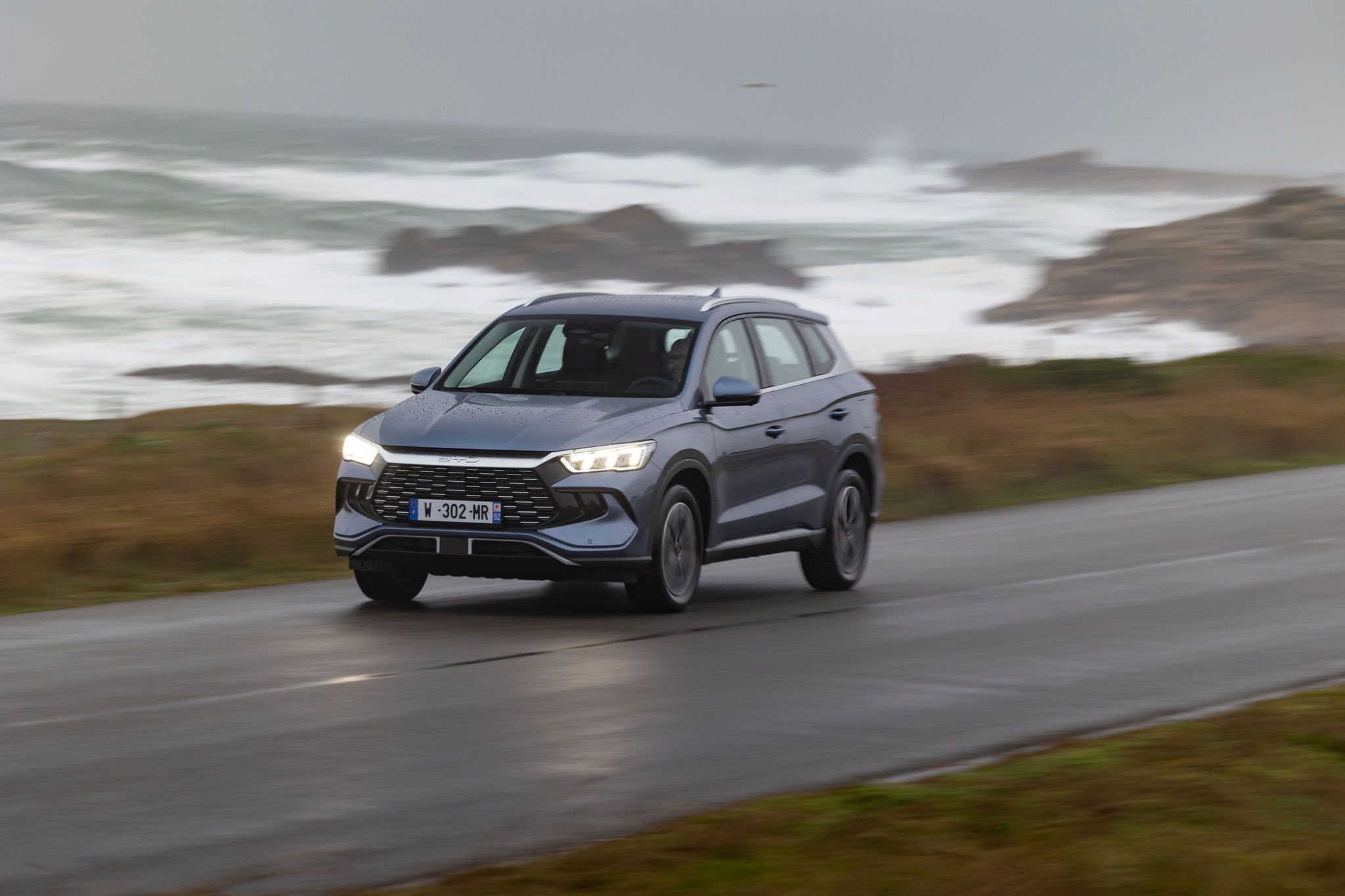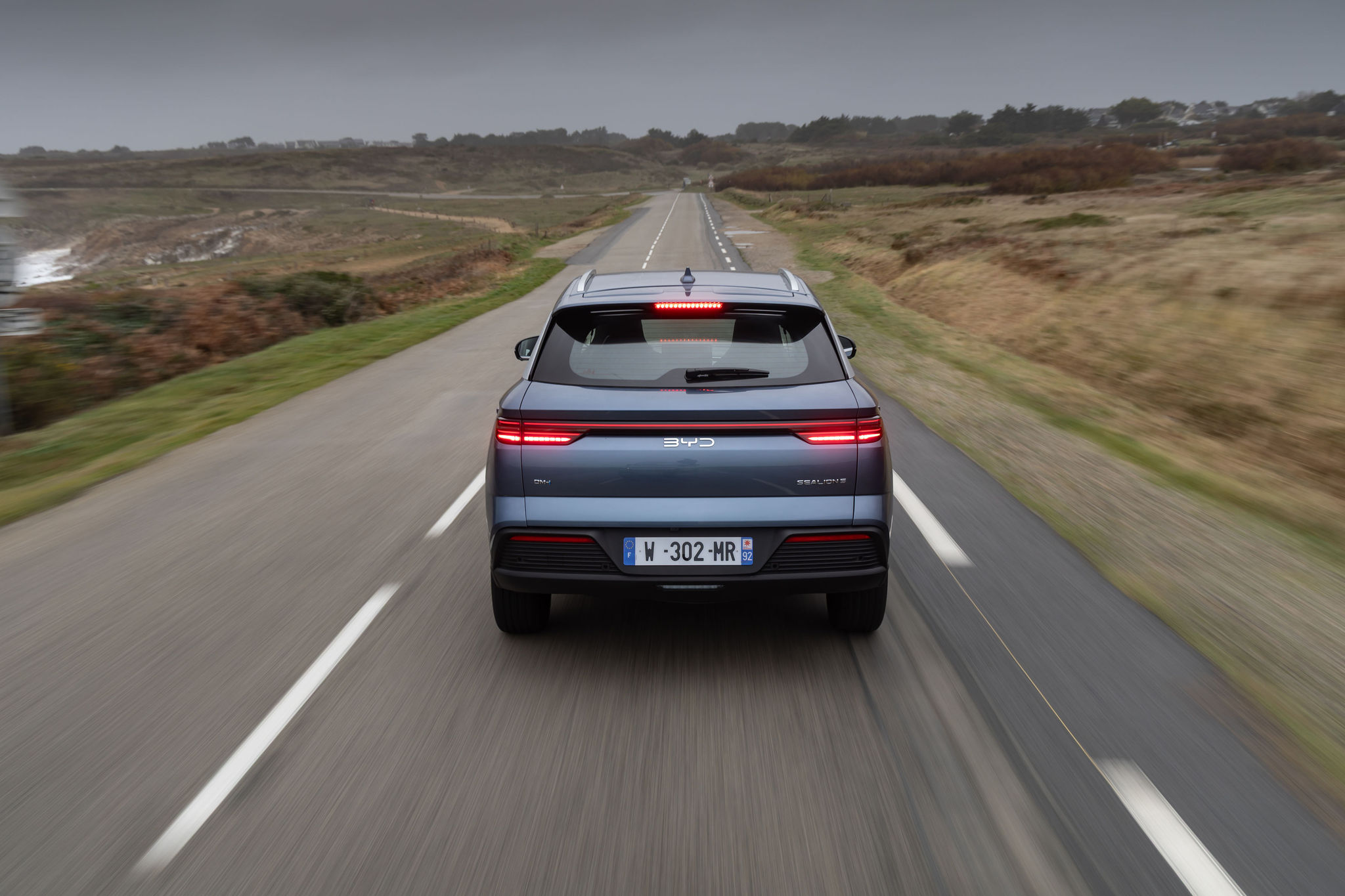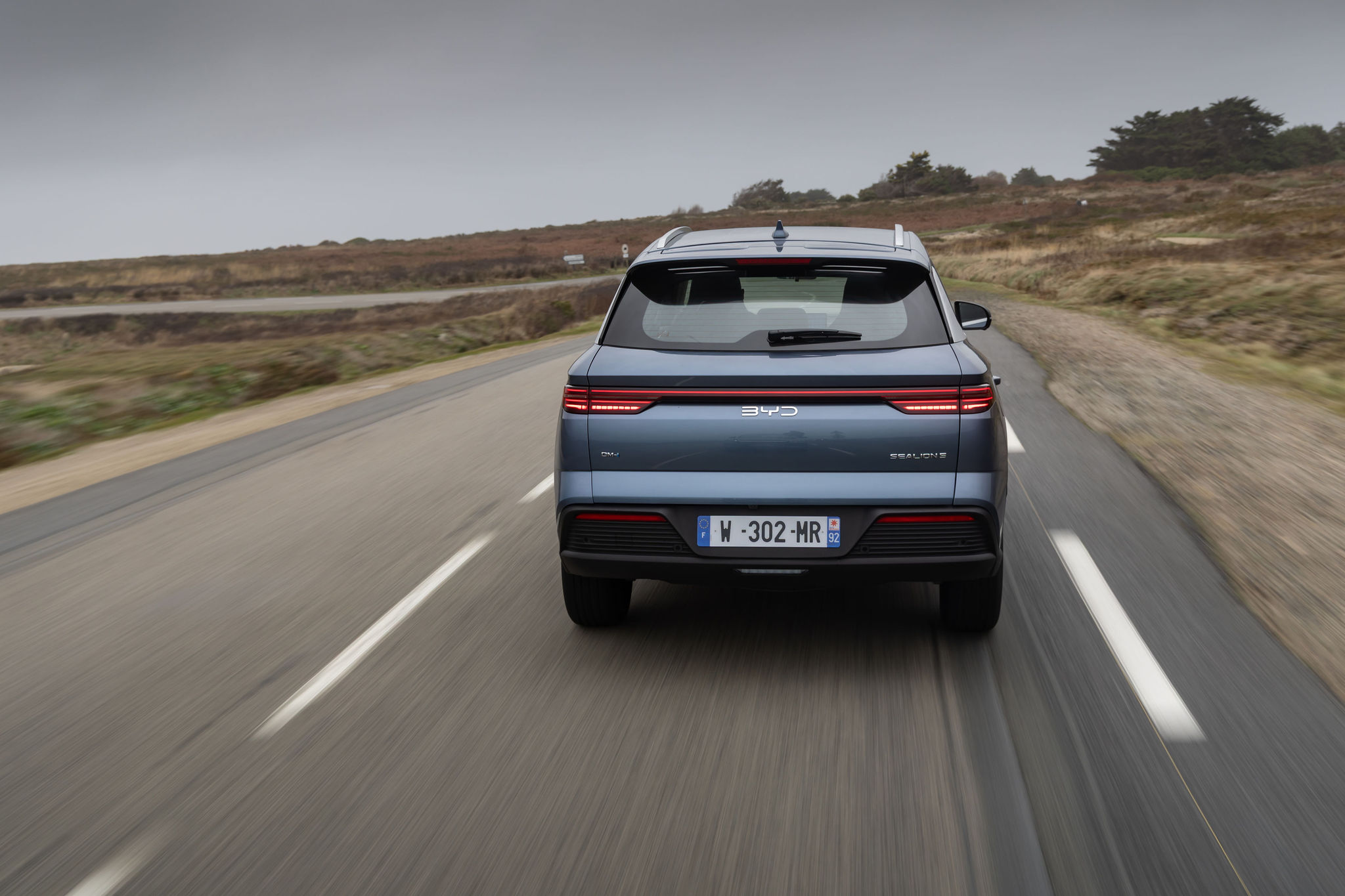 Une fois lancé sur l’asphalte, le Sealion 5 DM-i révèle un châssis plutôt bien accordé. Les suspensions offrent un compromis équilibré entre confort et maintien de caisse. Les irrégularités de la route se ressentent tout de même, notamment sur revêtement dégradé. C’est tout de même assez raide et, si jamais le conducteur qui peut anticiper n’en souffre pas forcément trop, les passagers, eux, le rappelleront à chaque passage sur un doc d’âne. Et ne cherchez pas trop à attaquer en courbe, l’auto n’est pas faite pour cela. Certes, les pneus Continental à basse résistance qui l’équipent ne favorisent pas l’adhérence sur les appuis, mais le train avant se montre vite dépassé lorsqu’on demande beaucoup de puissance, roues légèrement braquées, à basse vitesse. Attention, rien de rédhibitoire, nous sommes à bord d’un SUV familial, rappelons-le.