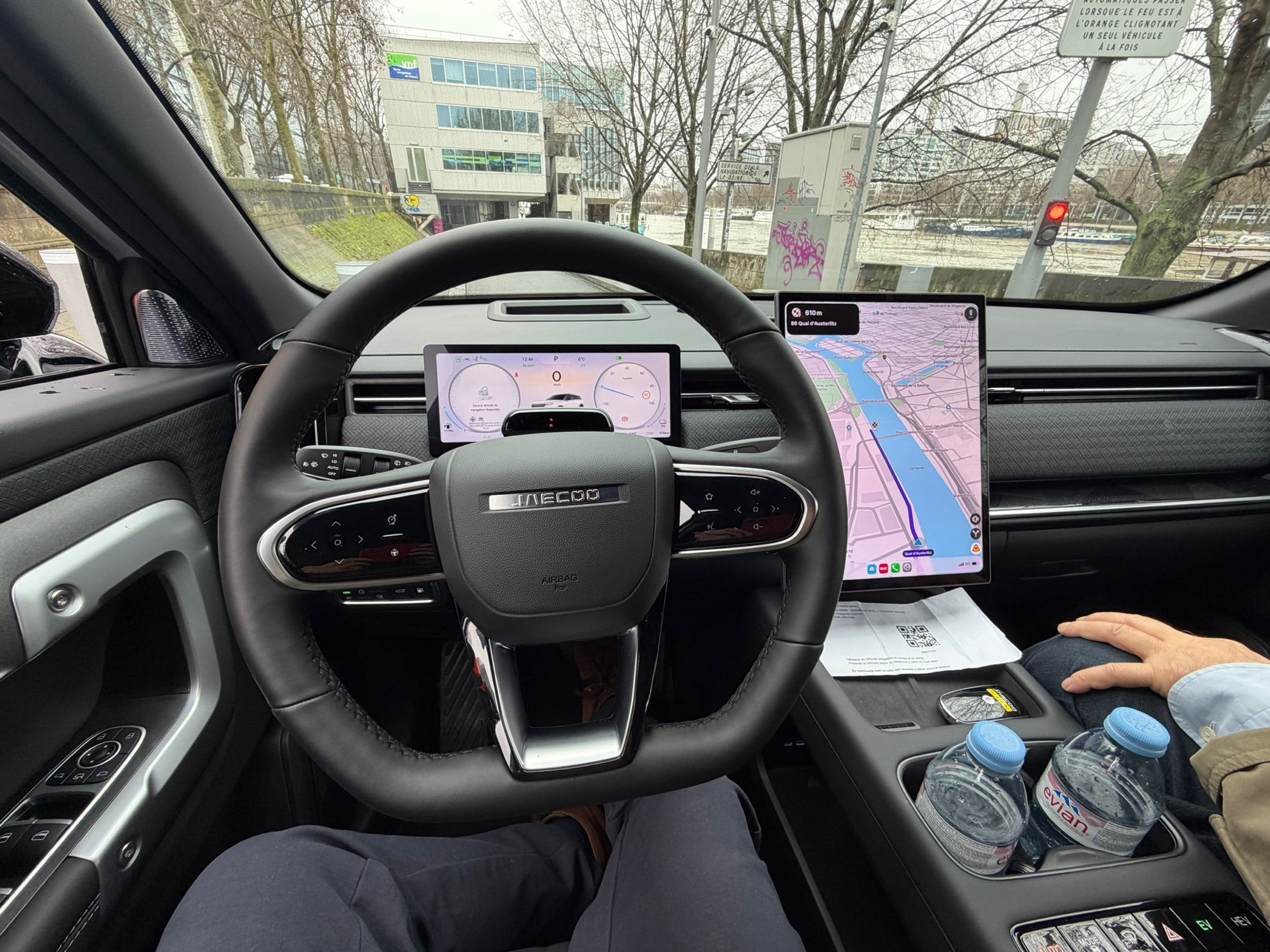 Mais passons. Difficile après cette « prise en mains » de se faire une idée précise des qualités dynamiques de ce Jaecoo 7 vu le parcours essentiellement péri urbain. En tout cas dans les embouteillages, on aura profité du confort, d’un équipement plus que complet, avec tout ce que la technologie embarquée peut proposer. Etablir ici un listing, n’aurait guère de sens, puisqu’il ne manque rien à cette auto en version dite « Exclusive » affichée à 37 990 Euros. Allez si, on a trouvé ! Pas de sièges massants. Ils sont juste à mémoire, chauffants (comme le volant) et réfrigérants. C’est vous dire…