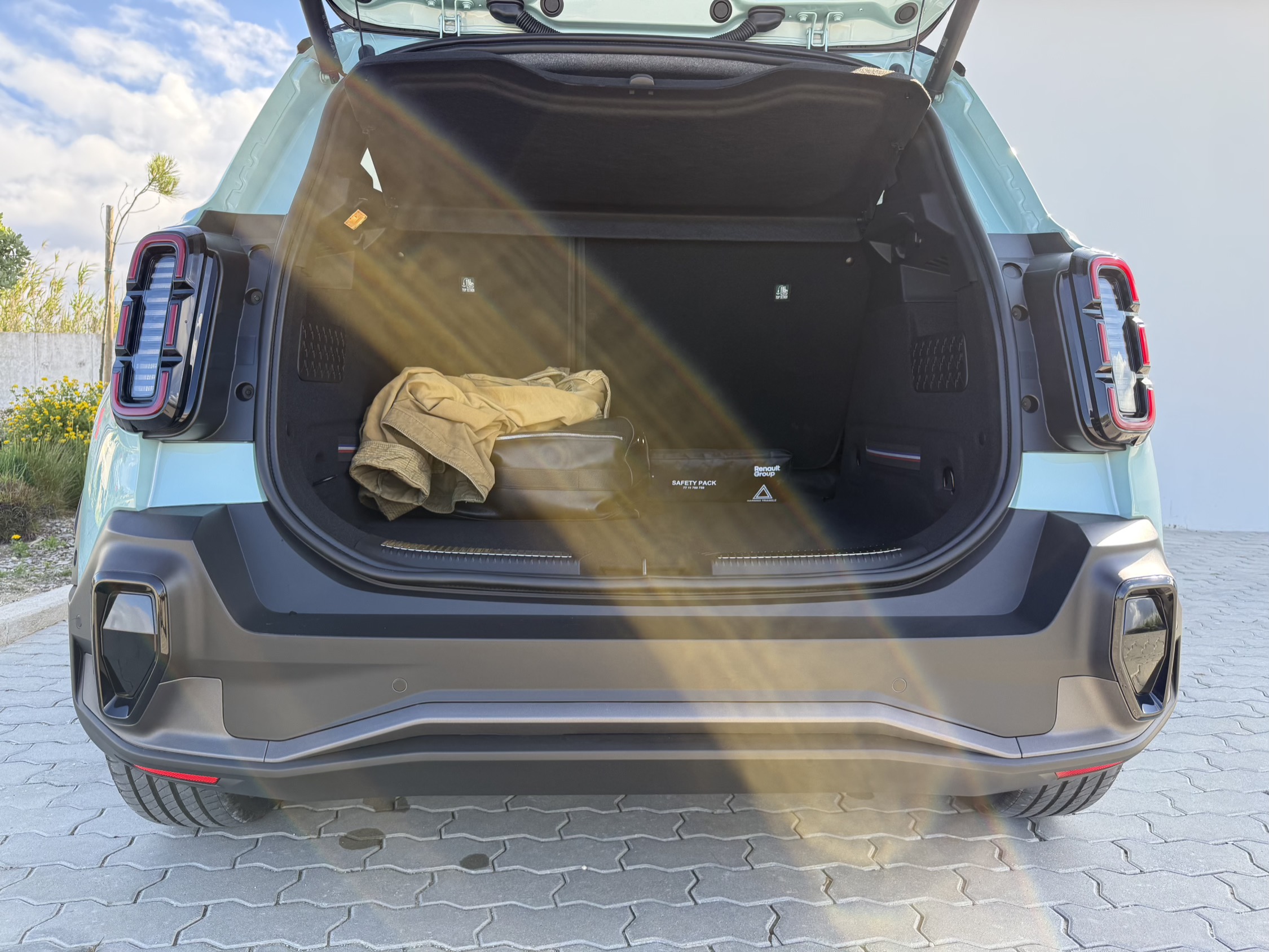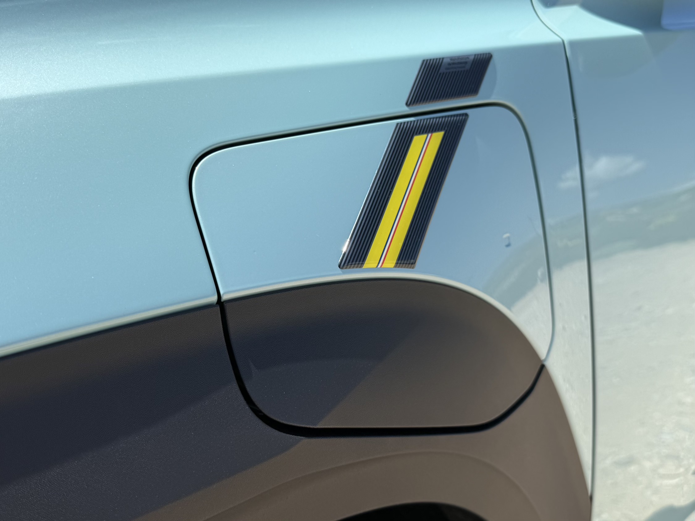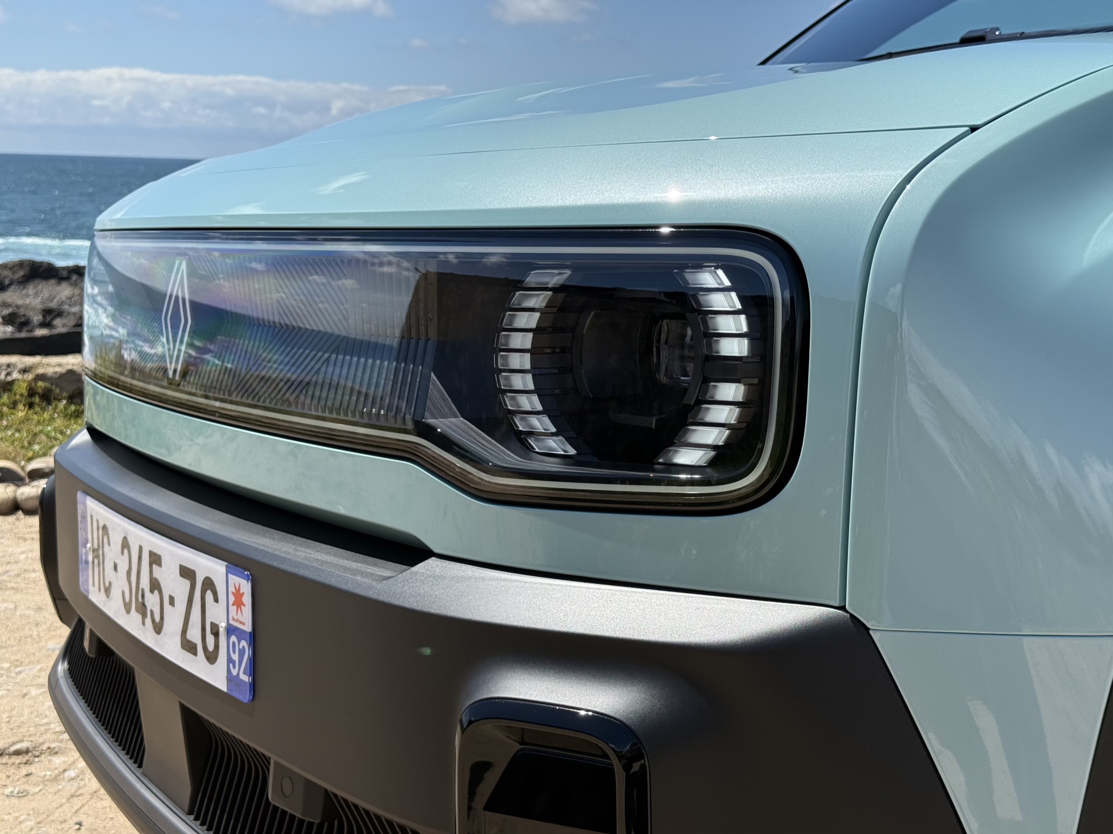 Le clin d’œil à la 4L originelle saute aux yeux : calandre traversante encadrée par deux phares ronds, capot plongeant, vitre de custode caractéristique, feux arrière en forme de gélule et hayon vertical descendant très bas, pensé pour faciliter le chargement. Ce dernier confère au coffre un seuil d’accès parmi les plus bas du marché (un peu plus de 60 cm). La capacité atteint 420 litres, dont une quarantaine dissimulée dans un double-fond pouvant accueillir câble de recharge ou caisson de basse du système Harman-Kardon.