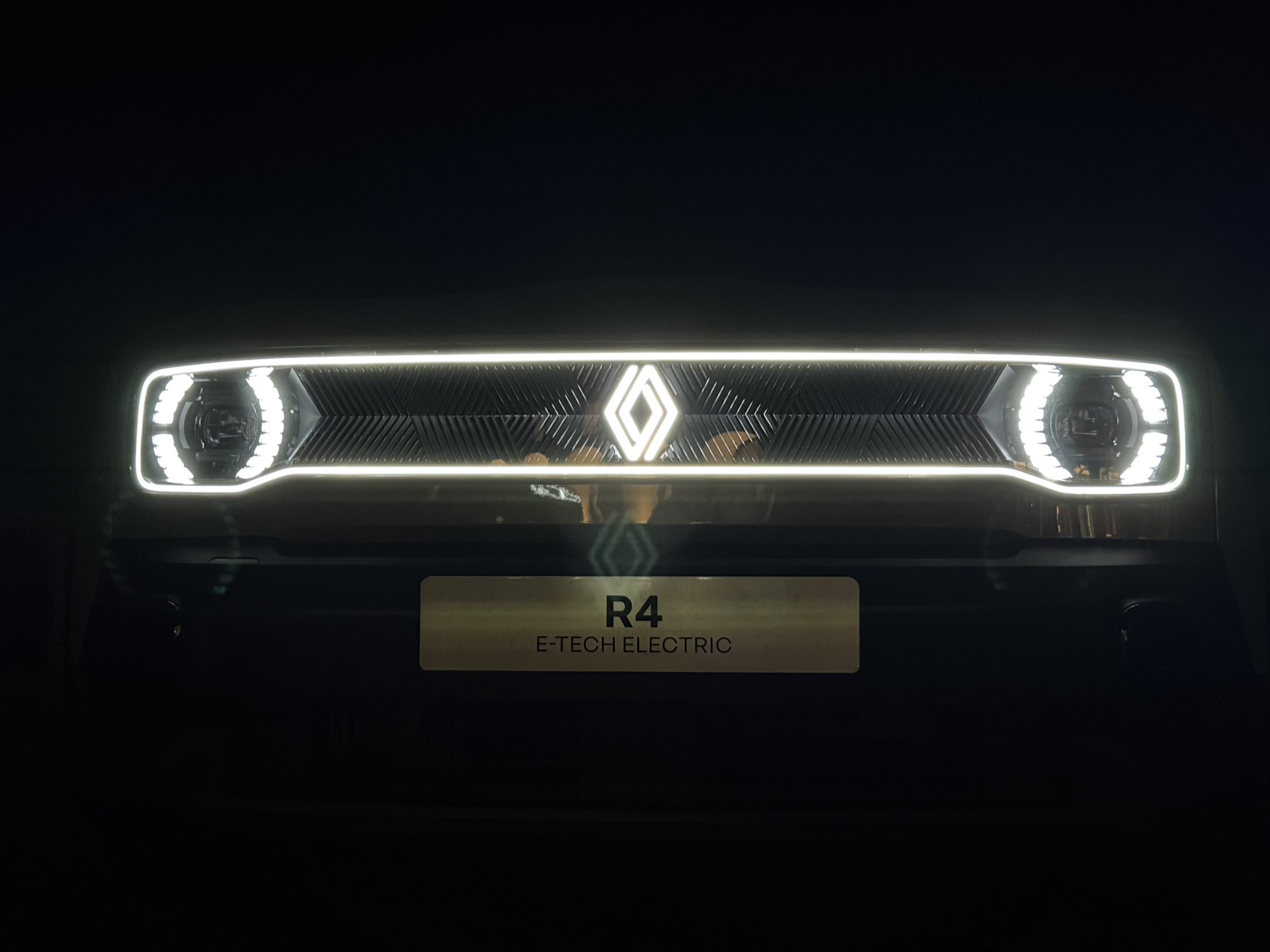 Avec 4,14 m de long, 1,80 m de large et 1,55 m de haut, la R4 e-Tech s’avère plus imposante que la R5 : 22 cm supplémentaires en longueur, dont 8 sur l’empattement, 3 cm en largeur et 5 en hauteur. Le dessin, lui, ne laisse place à aucune confusion avec sa sœur. Renault a choisi de rompre avec la logique du « copier-coller » à différentes échelles pratiquée par certains concurrents. Dans la gamme électrique du constructeur, chaque modèle a son identité et la R4 revendique la sienne avec force.