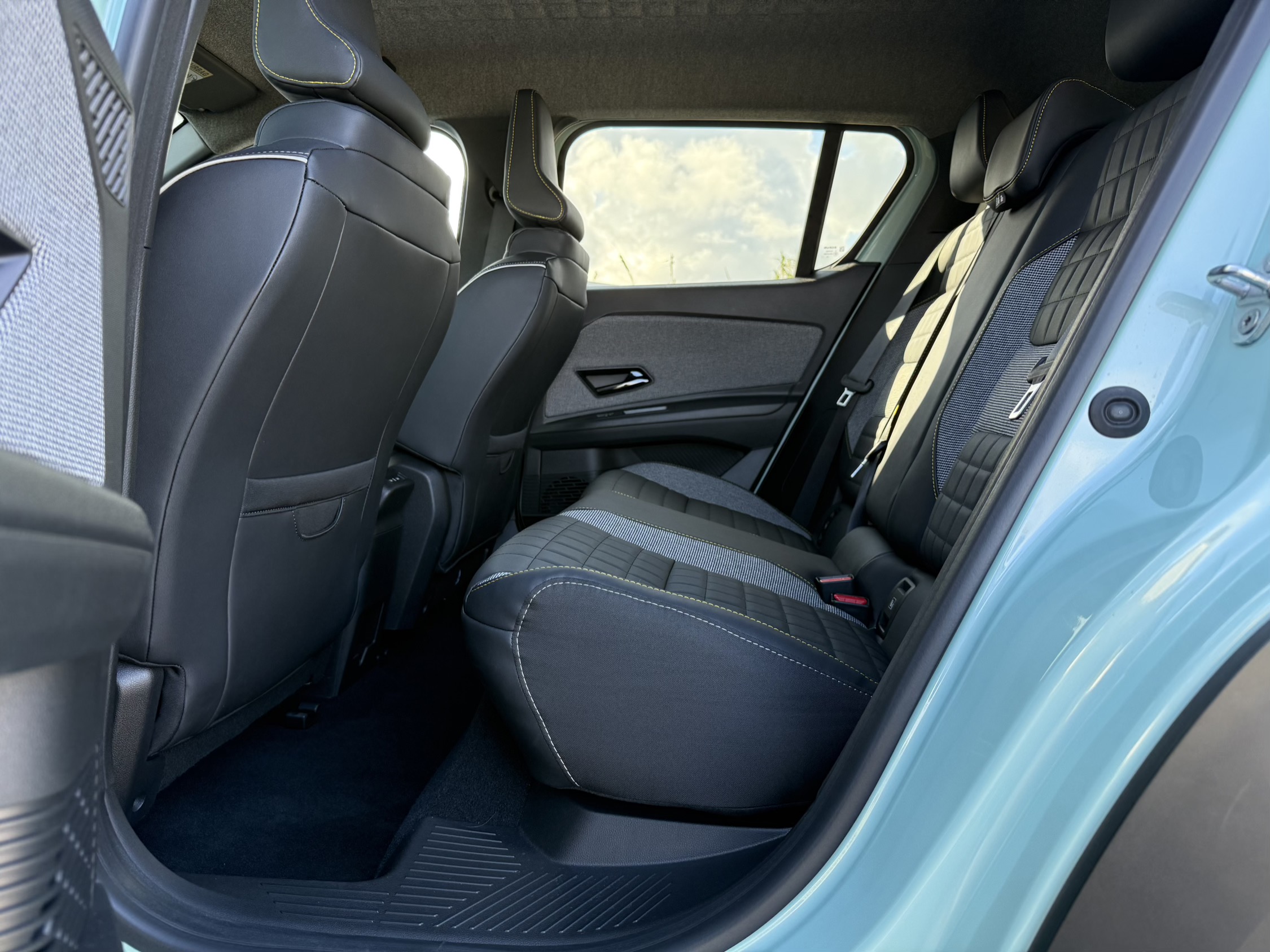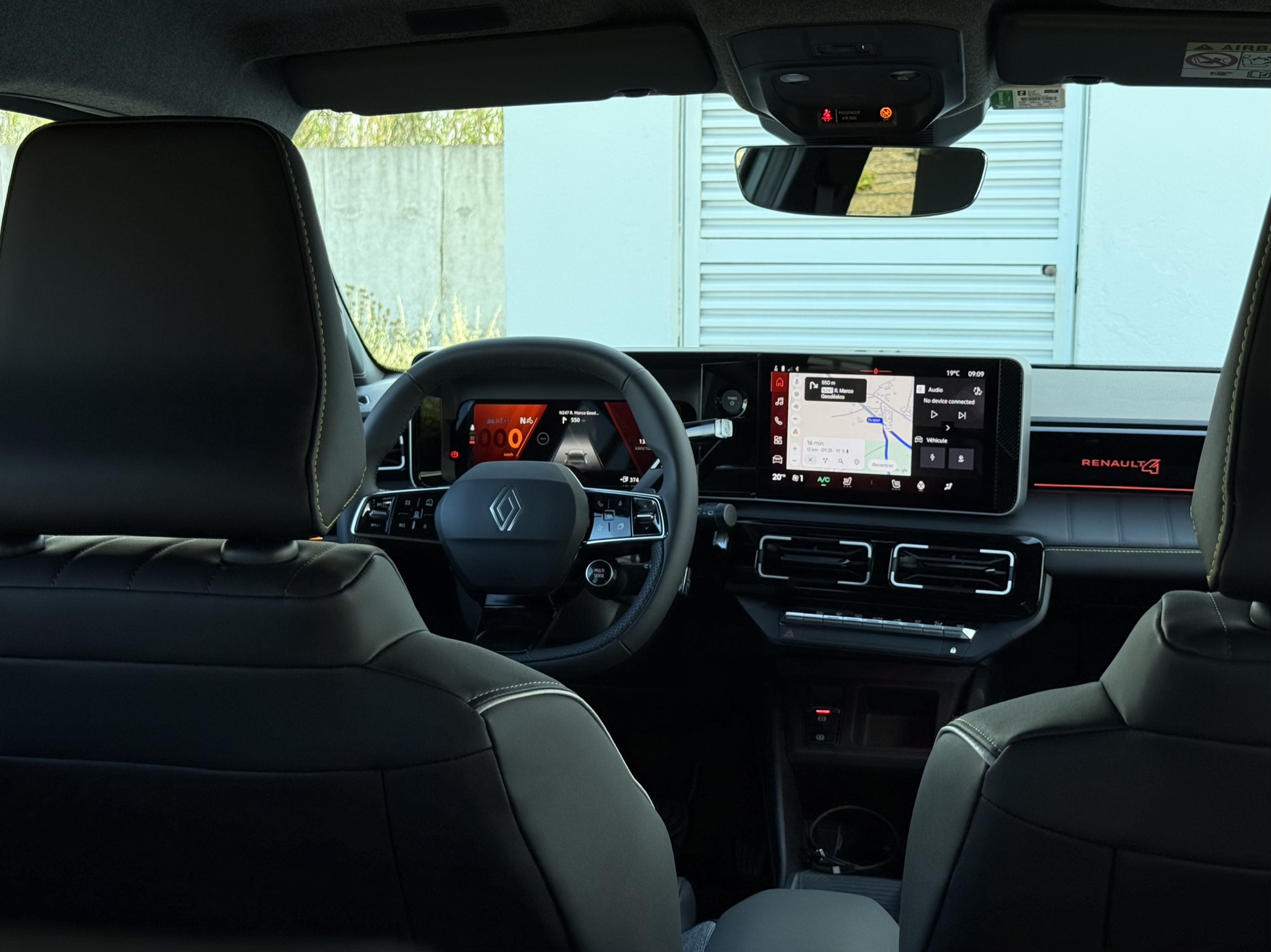 À bord, l’ambiance rappelle celle de la R5 à l’avant, avec son volant à méplat, son double écran et sa commande de boîte surélevée. Mais l’arrière se distingue : l’empattement rallongé libère de l’espace, offrant davantage de confort aux passagers. Dommage qu’on ne puisse pas facilement glisser ses pieds d’adulte sous les sièges du premier rang. Accoudoir central, rangements, prises USB-C et qualité de finition homogène renforcent le caractère familial. En cela, la R4 surclasse la R5. Même si l’espace reste compté pour un adulte de grande taille, les trajets d’une ou deux heures s’envisagent sans difficulté.