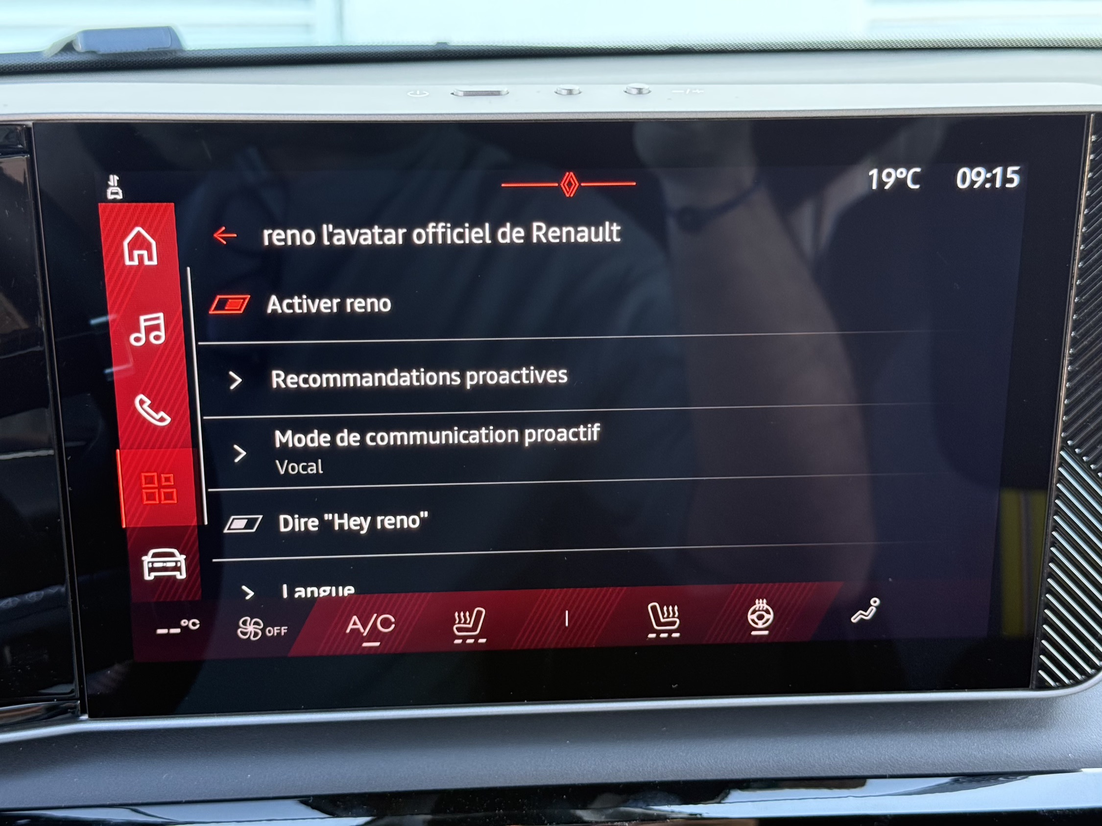 La nouveauté tient dans Reno, un assistant vocal intelligent connecté à ChatGPT. Il peut répondre aux questions sur le véhicule, contrôler certains équipements (ouvrir une vitre à moitié, par exemple) et maintenir une conversation. Lors de notre essai, il a toutefois montré quelques limites, avec des blocages temporaires. L’interface reste globalement fluide, mais souffre de menus parfois complexes. La caméra de recul, à la définition médiocre, contraste avec la qualité de l’écran central et constitue un vrai point faible.