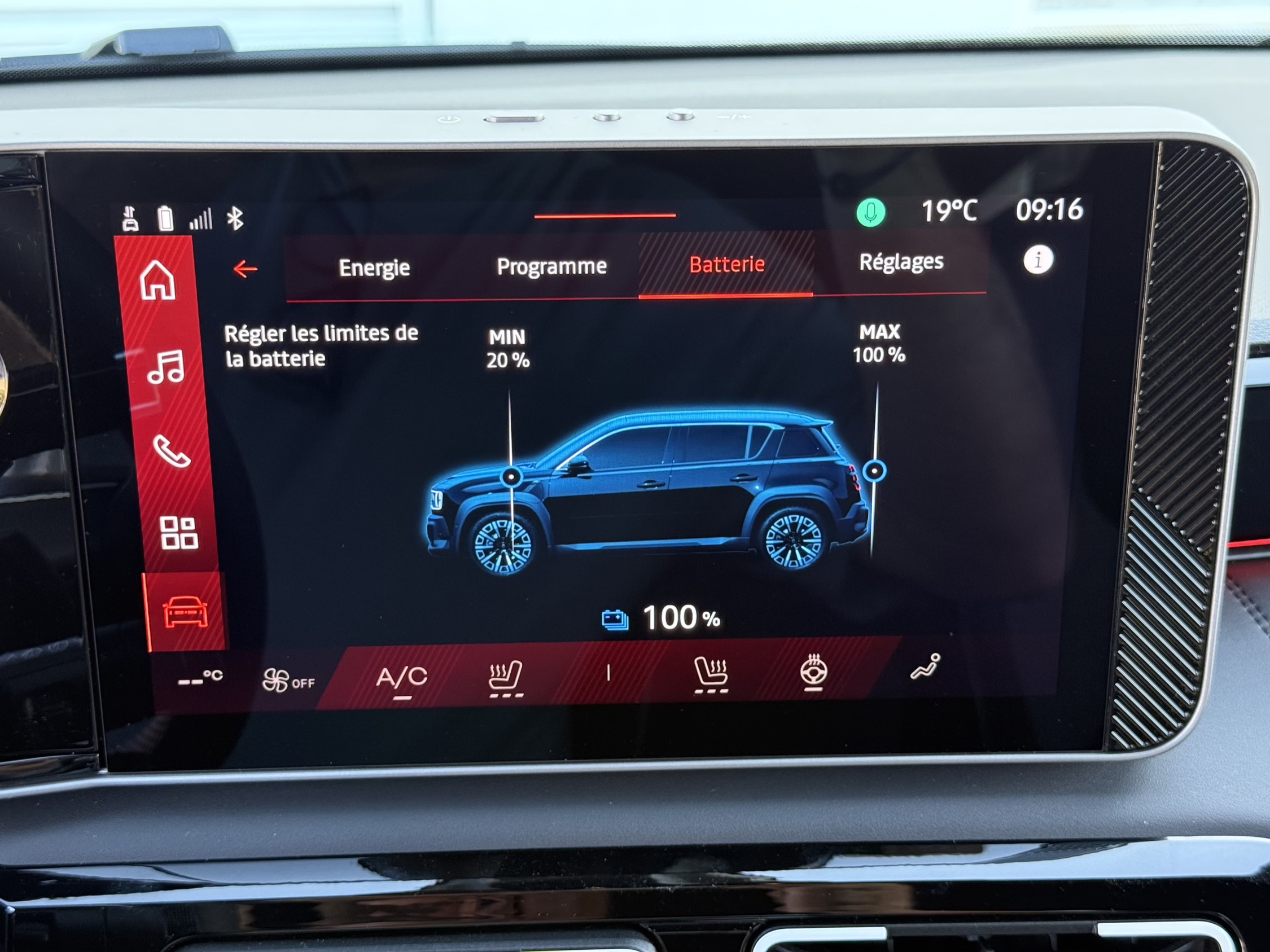 La recharge rapide atteint 100 kW (80 kW avec la petite batterie), permettant de passer de 20 à 80 % en environ 25 à 30 minutes. Pratique : à bord un indicateur situé à droite de l’instrumentation affiche l’autonomie estimée selon trois scénarios : ville, autoroute et moyenne observée.