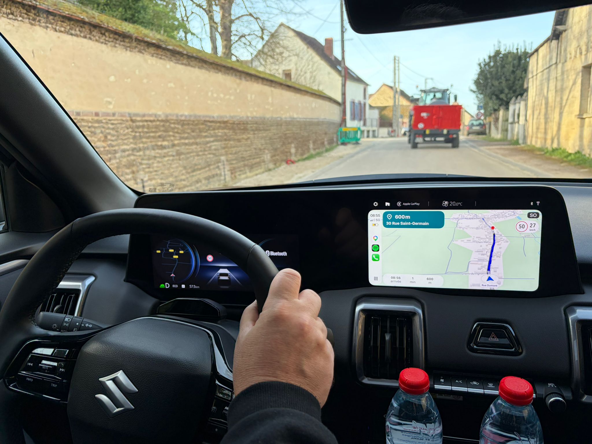 Une fois défoulé, notre collègue pouvait retrouver une peu de sérieux. Et chanter les louanges de ce nouveau SUV. À commencer par la vie à bord. Une vraie montée en gamme, même si on regrette l’abandon des compteurs analogiques, une spécificité Suzuki, parce que l’écran d’instrumentation proposé est peu lumineux et avare en informations. Heureusement la dalle centrale, sans être d’une finesse absolue, est conviviale et assez intuitive. Non, ce qui frappe c’est le niveau de finition qui grimpe de deux étages. Certes certains plastiques sont encore très durs, mais le e-Vitara fait aujourd’hui référence au sein de la famille Suzuki. C’est joliment assemblé et valorisant. Compteurs mis à part, nous validons.