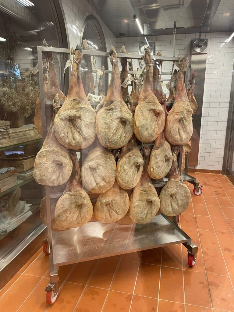 A table, nous en étions donc à disserter sur le moelleux de la pédale de frein, mais quand arriva la tartelette aux légumes de saison, la conversation dériva. On venait de passer devant une cave de salaisons ou pendaient des jambons joliment fumés. Et là on nous servait des brocolis. Ah non, pas après cette violente traversée des caves de séchage.