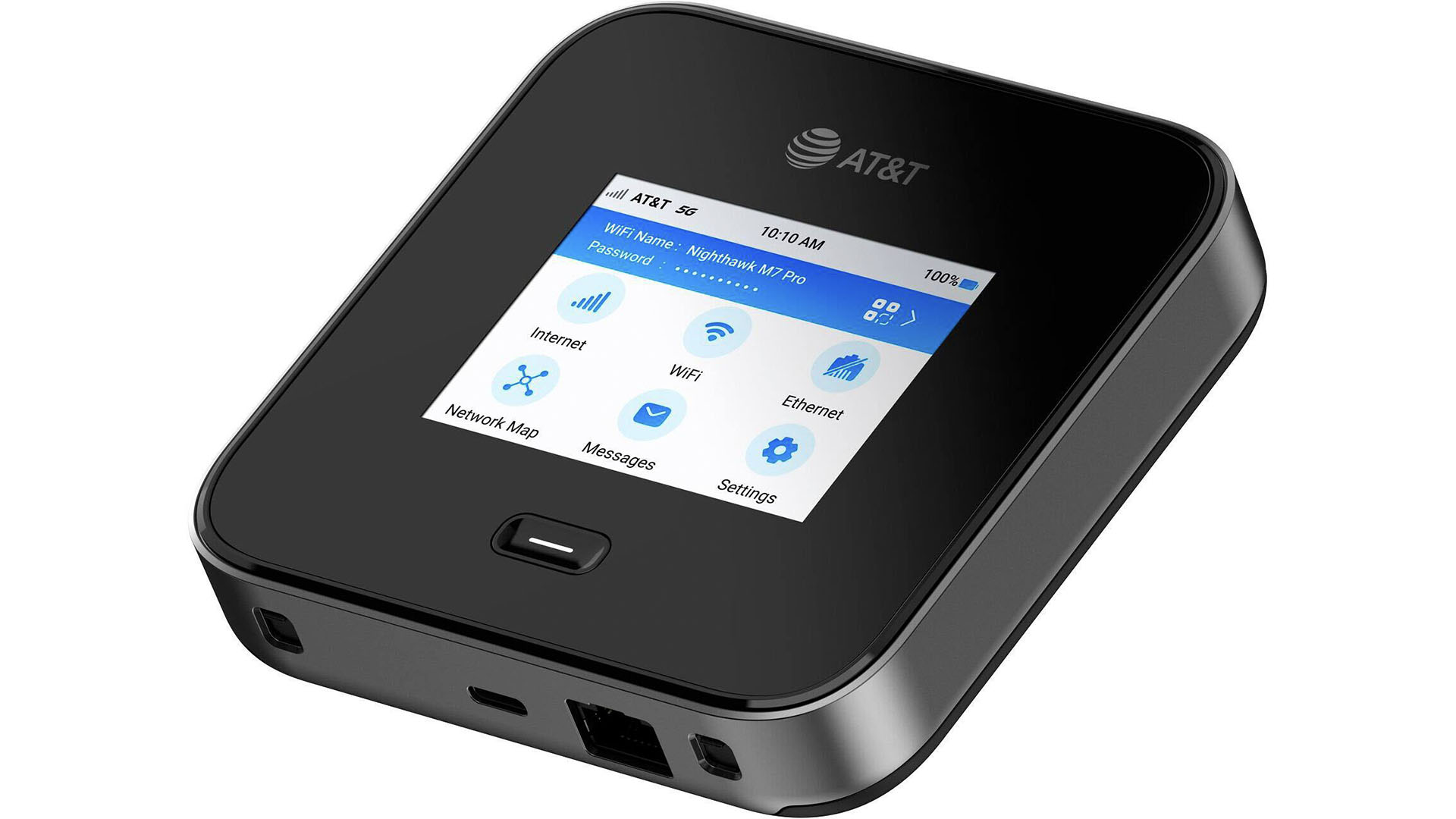Le M7 Pro adopte une approche fonctionnelle. Le boîtier compact, similaire à celui des précédents modèles Nighthawk, privilégie la solidité et la facilité de manipulation. Ce routeur n’est clairement pas un gadget, mais plutôt d’un outil transportable destiné à subir des cycles fréquents de mise en route, d’installation et de déplacement. L’écran tactile couleur de 2,8 pouces facilite le contrôle direct sans nécessiter l’ouverture de l’interface Web. Cet écran affiche les informations essentielles, comme l’état du réseau, les bandes actives, les terminaux connectés ou la quantité de données consommée, et permet d’effectuer les réglages de base. Il est verrouillable de sorte qui n’importe qui ne peut pas s’amuser à triturer vos réglages réseau ou piquer votre mot de passe wifi.